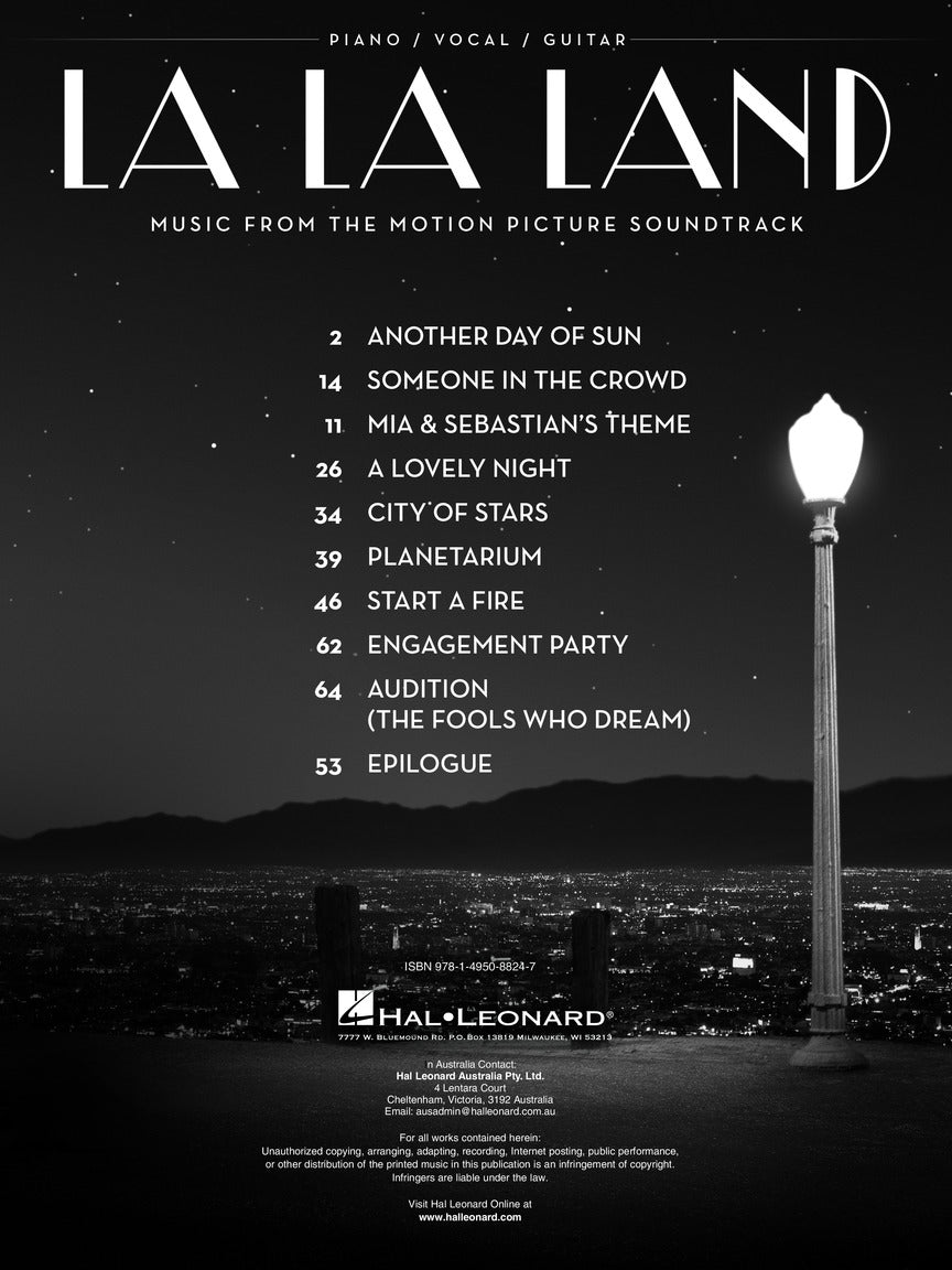 Written and directed by Academy Award® nominee Damien Chazelle, La La Land tells the story of Mia [Emma Stone], an aspiring actress, and Sebastian [Ryan Gosling], a dedicated jazz musician, who are struggling to make ends meet in a city known for crushing hopes and breaking hearts. Set in modern day Los Angeles, this original musical about everyday life explores the joy and pain of pursuing your dreams. Our matching folio features 10 piano/vocal/guitar arrangements from the soundtrack featuring original music and songs by Justin Hurwitz with lyrics by Benj Pasek and Justin Paul. 72pp.