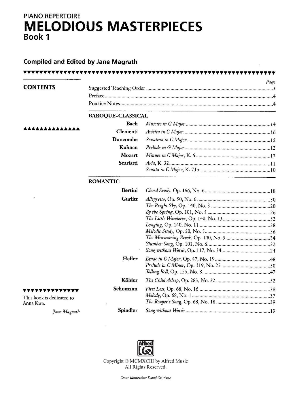 These masterpieces encourage performers to play more expressively and in a reflective manner. Well-suited for students who enjoy playing literature of a more lyrical nature. Most selections are from the Romantic period, although all periods are represented.